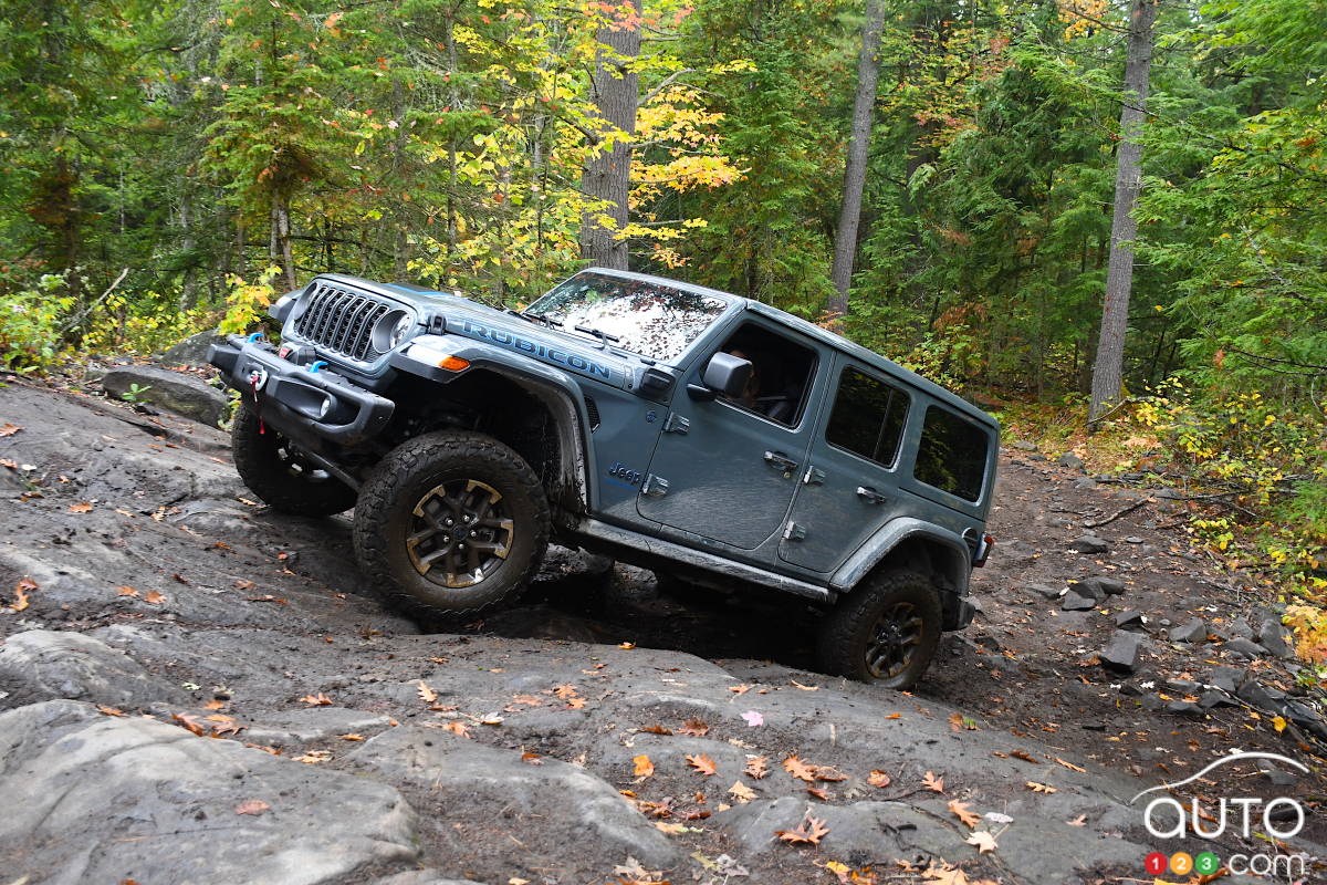 Si nous avons découvert quelque chose avec nos plus récents exercices en conduite hors route, c’est que le comportement de la version 4xe du Wrangler est différent, en raison de la distribution du couple qui est plus importante.
