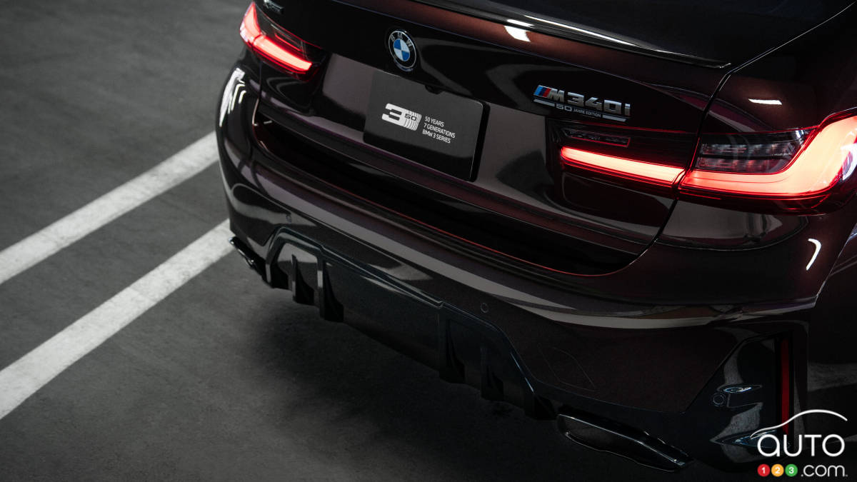 Extérieurement, la M340i xDrive 50 Jahre Edition arbore le kit carrosserie M, des jantes forgées de 20 pouces à rayons en Y et des écussons 50 Jahre Édition sur le hayon.