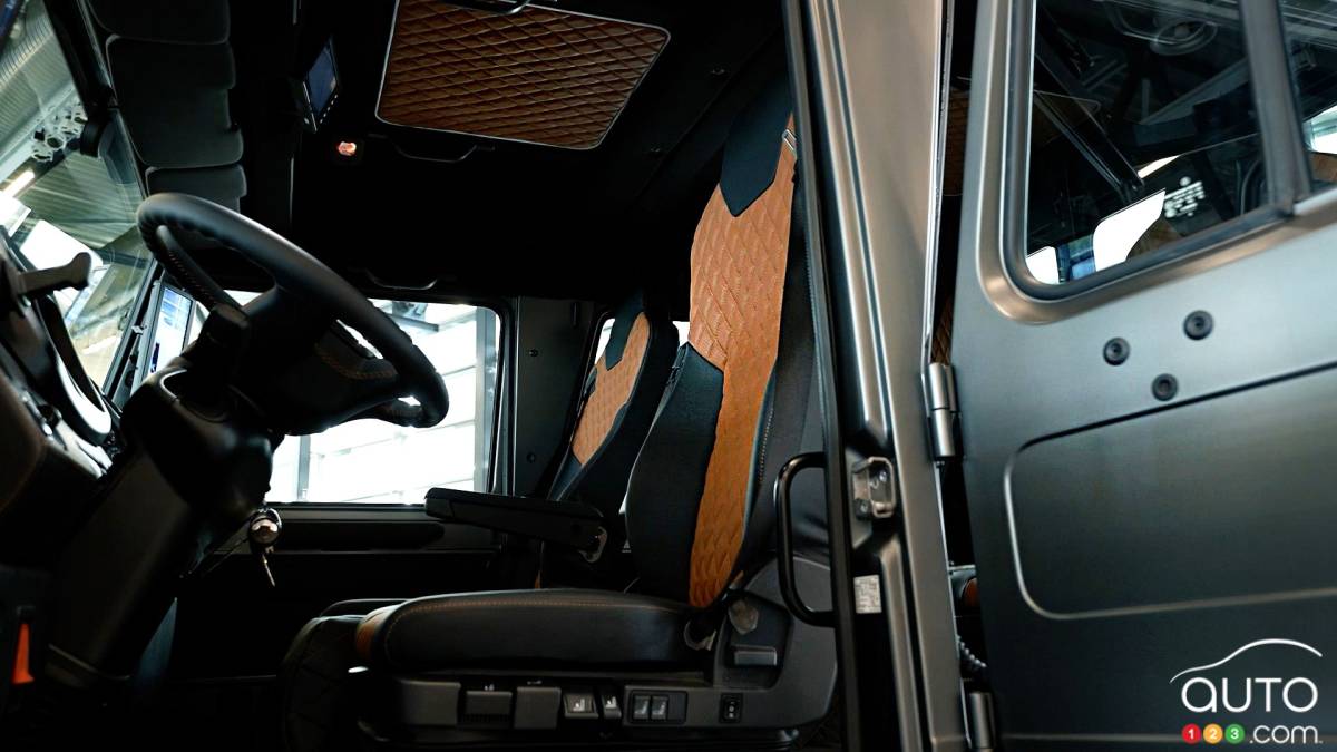 Au Canada, où l'Unimog est principalement utilisé sur les chantiers forestiers, pour l'entretien routier hivernal ou dans les opérations minières, cette version luxueuse restera un rêve, car elle ne sera jamais commercialisée sur notre marché.