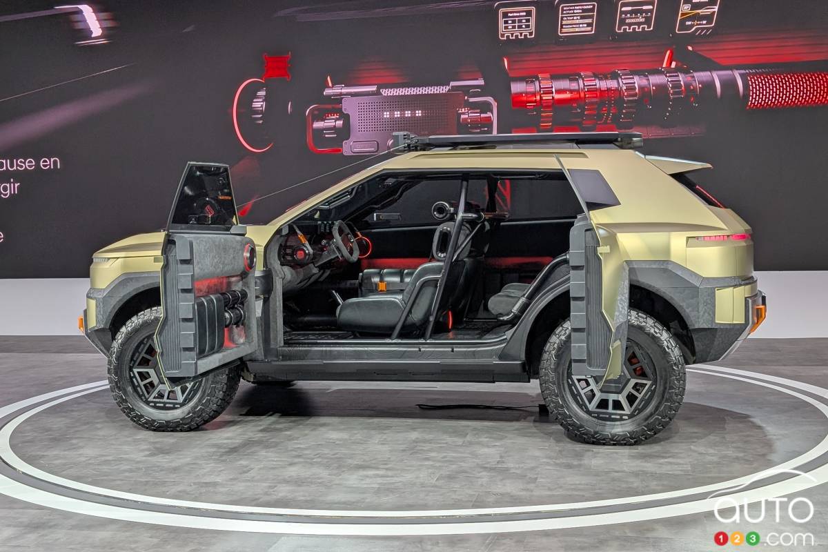 Autre détail intéressant : les caméras des rétroviseurs latéraux sont amovibles et peuvent être utilisées comme lampe de poche. Le concept mise aussi sur une approche très « expédition », avec notamment un éclairage auxiliaire sur le toit et des points d’ancrage/crochets visibles, dont certains intègrent une fonction de décapsuleur.