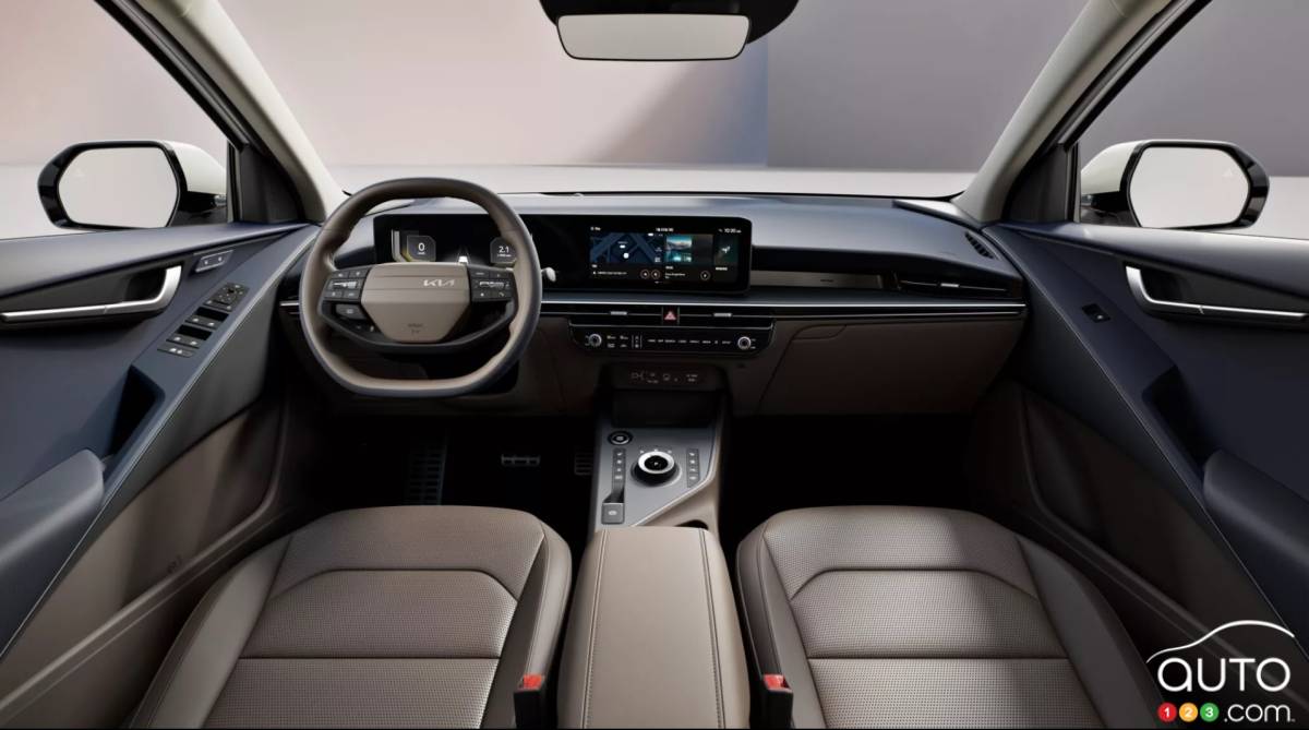 Kia offre également une cure de jouvence à l'habitacle. La partie supérieure de la planche de bord a été retravaillée et accueille désormais les deux écrans jumeaux de 12,3 pouces que l'on retrouve dans les modèles EV. Le volant est à deux branches, avec un haut et un bas à méplat.